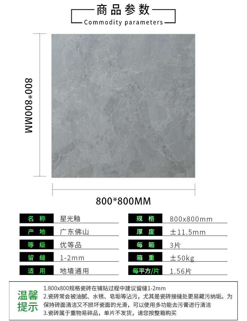 星光釉 【產(chǎn)品介紹】從天然礦石中提取的閃光干粒,加入高耐磨防滑釉料和多種特殊晶體釉,使瓷磚表面隨光線變化,散發(fā)如星空細(xì)碎微光。星光釉系列經(jīng)過(guò)30000噸超大壓機(jī)無(wú)摸壓制成型,胚體受力更均勻,具有更高平整度、超強(qiáng)抗沖擊、韌性與硬度。