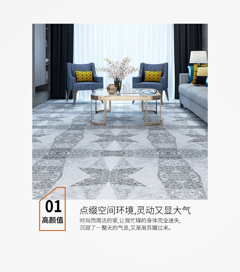 金曼古仿古地磚,采用國(guó)際先進(jìn)的超大型壓機(jī)自動(dòng)成型,經(jīng)世界一流的滾筒印花和高溫煅燒而成,通過仿石、仿巖、仿木、仿布、仿金屬等多種表現(xiàn)方式,產(chǎn)品花色圖案新穎時(shí)尚,領(lǐng)先國(guó)際潮流,具有超耐磨、防滑、防污等高性能指標(biāo)。