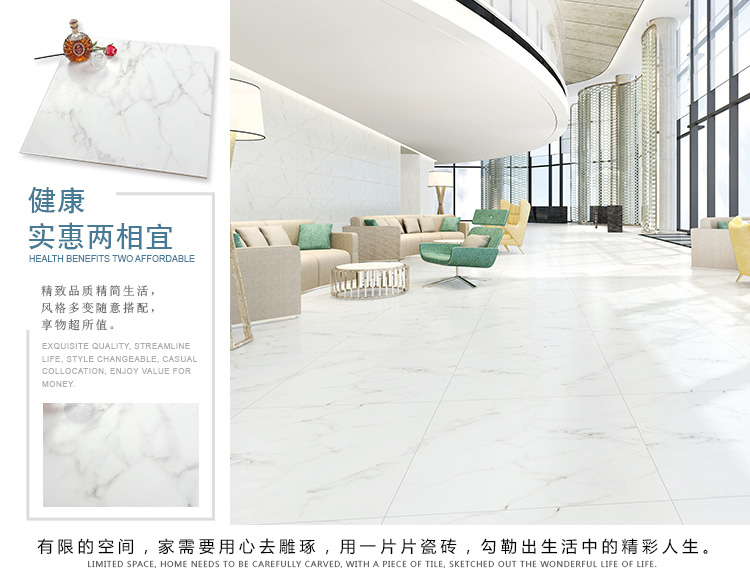 柔光瓷磚是磚面反射介于強光與弱光之間的一類瓷磚,其結(jié)合亮光類瓷磚的高調(diào)明艷裝飾和啞光類瓷磚的低調(diào)內(nèi)斂搭配效果,通過動態(tài)柔光蠟拋技術(shù),降低產(chǎn)品反光率,從而達到人體舒適的視覺感受以及無光污染的空間裝飾效果。優(yōu)點:1.視覺舒適,無光污染 2.堅固耐磨,不易刮花.