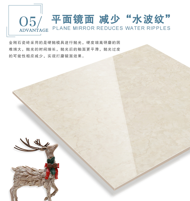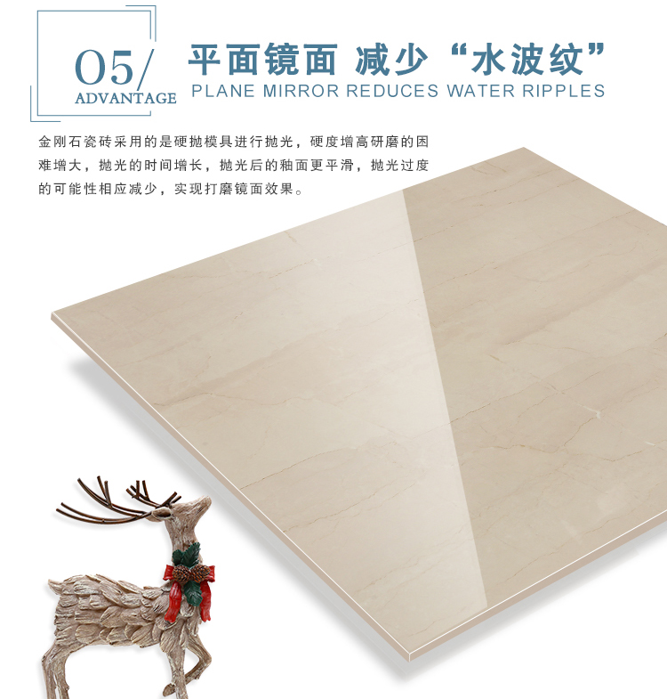 金曼古瓷磚廠家特價金剛石因高品質(zhì)而得名,是一款極具天然石材效果和微晶石質(zhì)感的仿石材瓷磚,它不但在價格、環(huán)保、耐用和清潔上極具優(yōu)勢,在質(zhì)感、規(guī)格、花色、重量等指標上,金剛石都遠遠勝于石材、拋光磚。相比其他種類的產(chǎn)品,它最大的特點可以用“高亮度、高耐磨、高平整、高逼真、高清晰、高環(huán)保”。